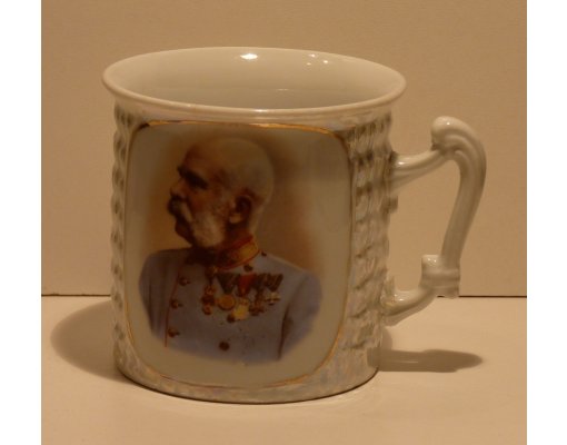 Vroubkovaný hrneček s portrétem císaře Františka Josefa ve služební uniformě