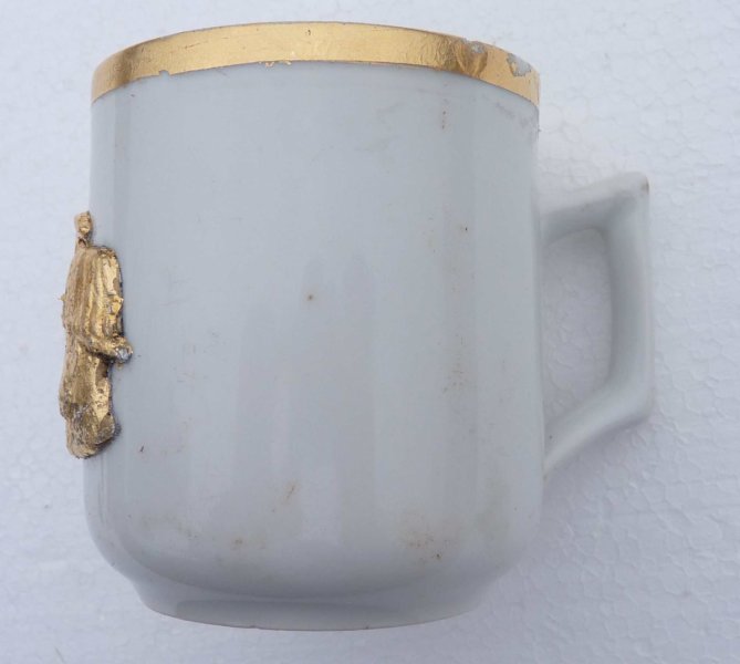 Porcelánový hrnek s portréty trojdohody ( zlacený odlitek ) - Franz Josef , Wilhelm a Mohamed V. / turecký sultán /