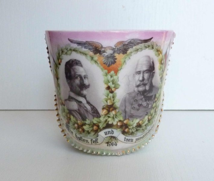 Mimořádně zdobný hrníček s portréty císařů / Franz Josef I. a Wilhelm II.