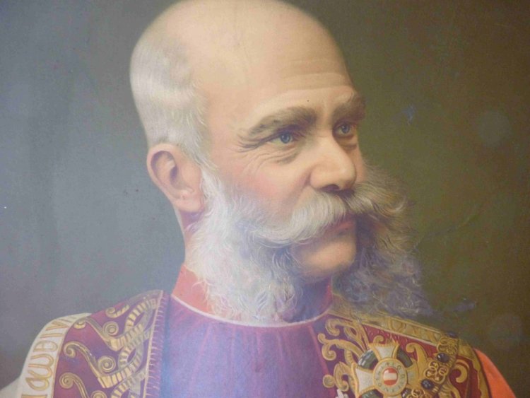 Jeden z nejlepších exponátů v museu - obraz císaře Františka Josefa v mimořádném zlaceném rámu