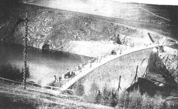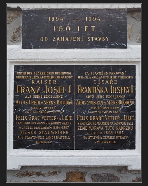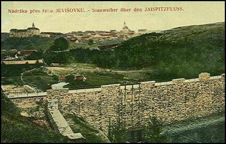 Se stavbou přehrady bylo započato hlavně z bezpečnostních důvodů, protože divoká říčka Jevišovka při častých obzvláště jarních povodních zaplavovala zvláštěúrodné rovinaté pozemky na jejím dolním toku, zejména ve Stošíkovicích na louce. Ty patřily vlivnému a bohatému poslanci vídeňského říšského sněmu, který si prý stavbu údolní přehrady na Jevišovce ve Vídni prosadil. Na původně projektovaném místě, kde býval rybník (pivovarský) se po opětovném průzkumu základů bylo konstatováno, nelze zakládat v projektované hloubce, protože by základy nestály na pevné rostlé skále, ale na diluviálních naplaveninách. Proto stavba přehrady bylaposunuta o 130metrů výše do užší části údolí, kde byla pevná skála již v sedmi metrech. S vyplňováním křestního listu bylo započato v březnu 1894, kdy byla stavba zahájena. Jeho závěrečným potvrzením byl 30 říjen 1897, kdy byl položen závěrečný kámen. Stalo se tak za přítomnosti zemského zastupitelstva, mnoha poslanců, státních a zemských úředníků a velkého množství okolního obyvatelstva, jak praví dobové materiály. Prvním správcem přehrady (hrázným) se stal Augustin Doležal který pracoval při její stavbě jako předák s tesařskou partou.