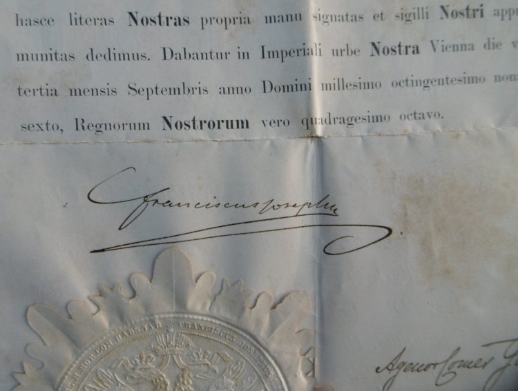 Carolum W.Wahle . Dekret - jako druhý v museu s mimořádným podpisem Franciscus Josephus !!!!!!