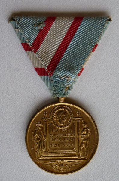 Jubilejní medaile k 200 - letému trvání K.u.K. u Deutschmeister Inft. Reg.No. 4. 1696 - 1896 , bronz