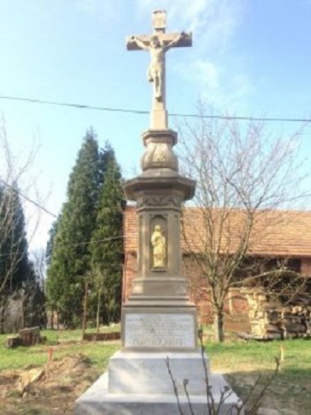 Láska, lásku splácí. Touto větou začíná text na kamenném kříži, který je umístěn uprostřed obce v zahradě bývalé obecní školy.