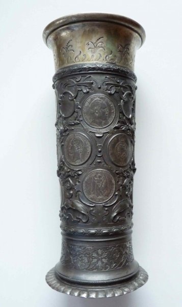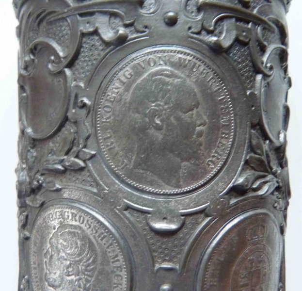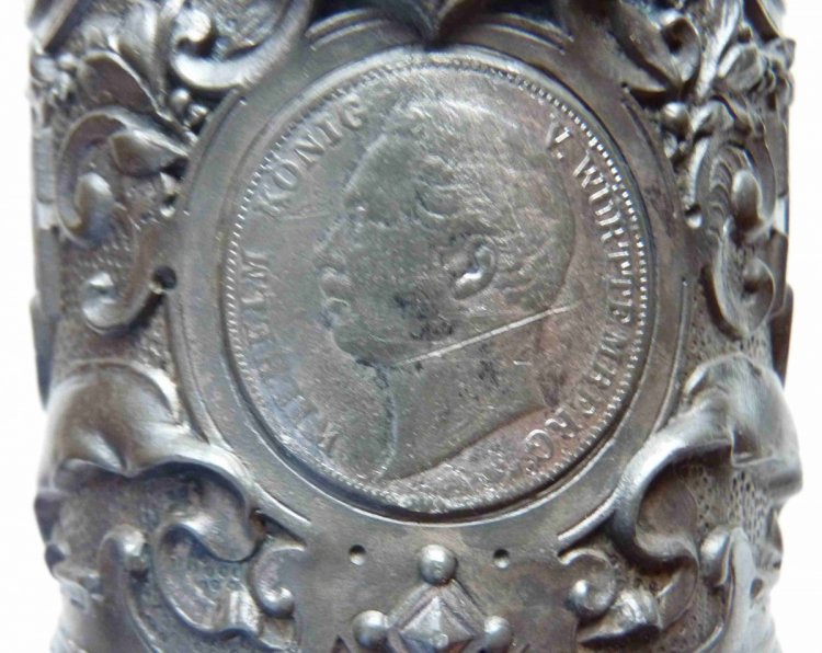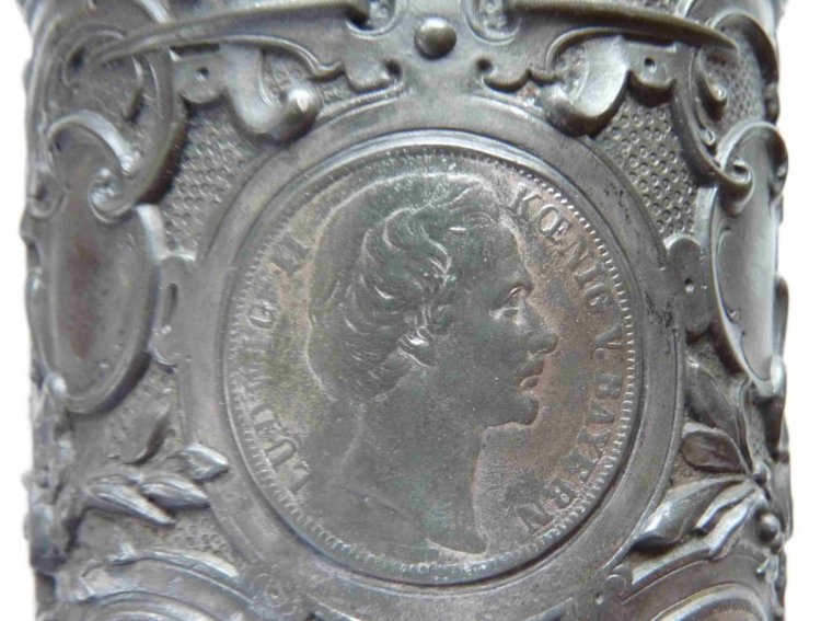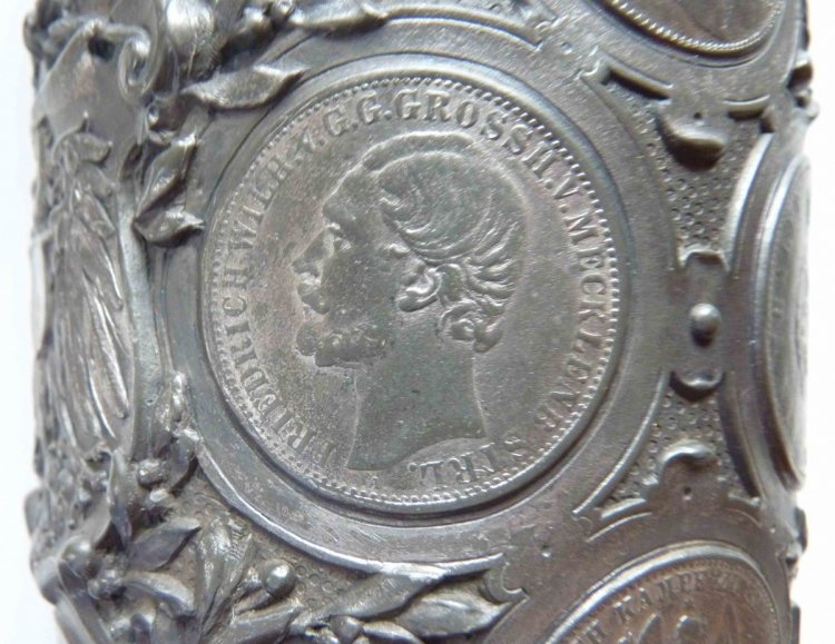 Celostříbrný pohár (1,1 kg stříbra ) - s replikami německých vládních mincí /KARL , WILHELM , LUDWIG , IOHANN , MAXMILIAN , FRIEDRICH