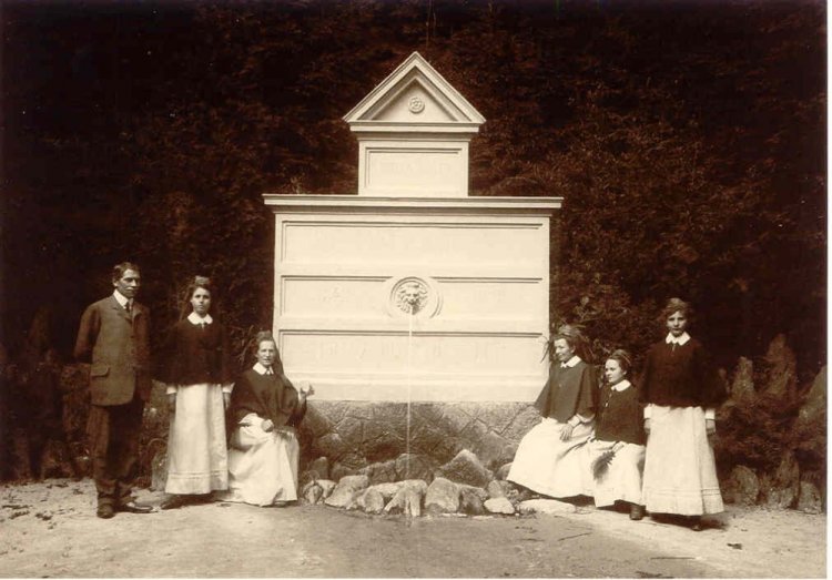 Díky zde přiložené listině dárců svůj slib splnil a v obecním lese pamětní kámen s deskou a zřízení malé kašny k prameni a vysázení dvou památných dubů, dnešním dnem toto předává do veřejné správy obce Kokonín, s prosbou, toto nákladem 211 zl. 57 kr. vybudované pamětní místo opatrovat jakož i jeho okolí na památku Monarchy a jeho 50. leté požehnané panování, čímž vyjadřuje svůj dík panskému dvoru.
