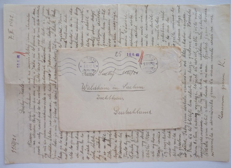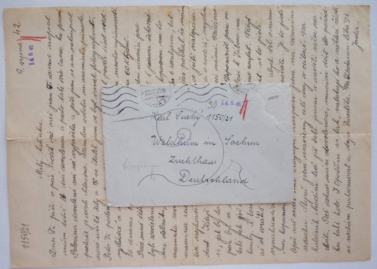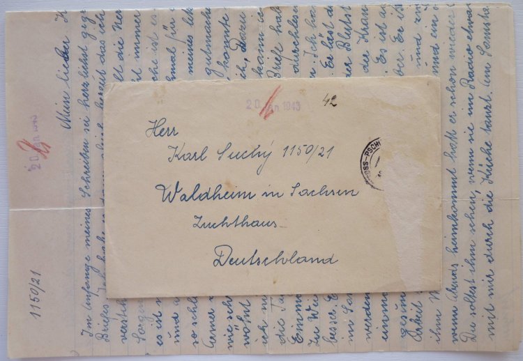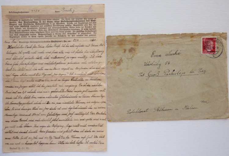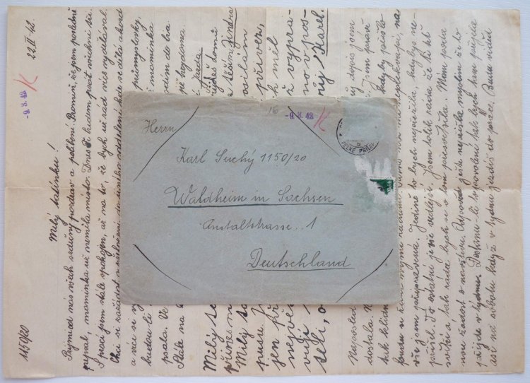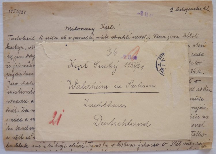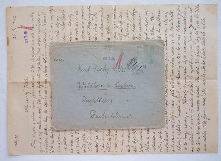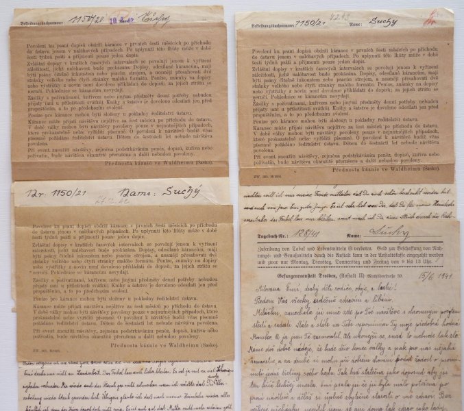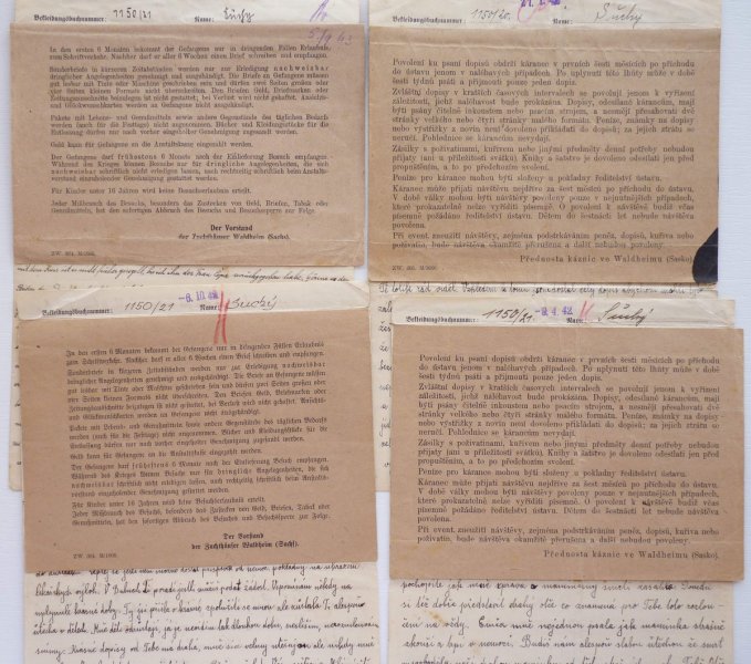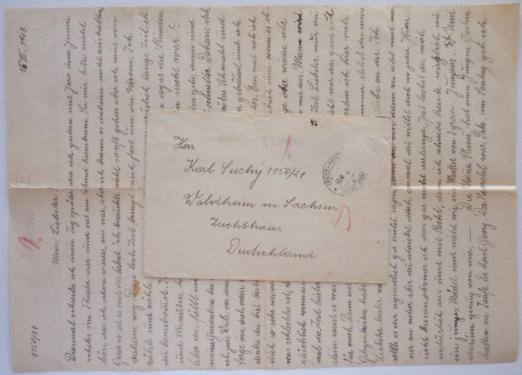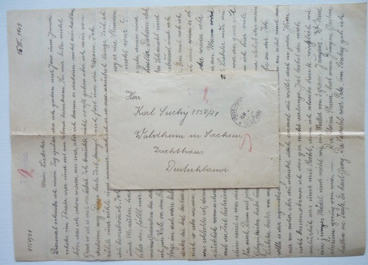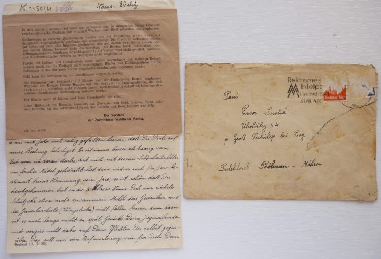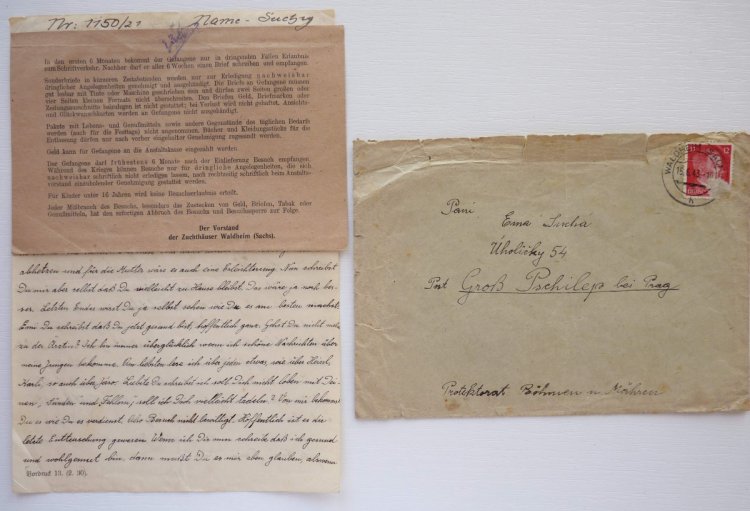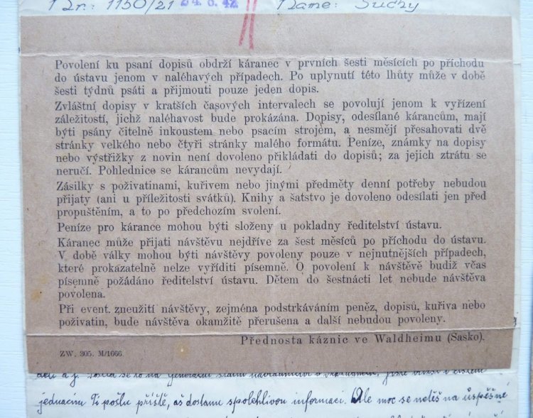 Další mimořádný celek je z věznice WALDHEIM in SACHSEN. Na českém filatelistickém trhu neznámá věznice .Mimořádné je i zachování průvodního lístku o podmínkách psaní dopisů .... verze v češtině i v němčině.