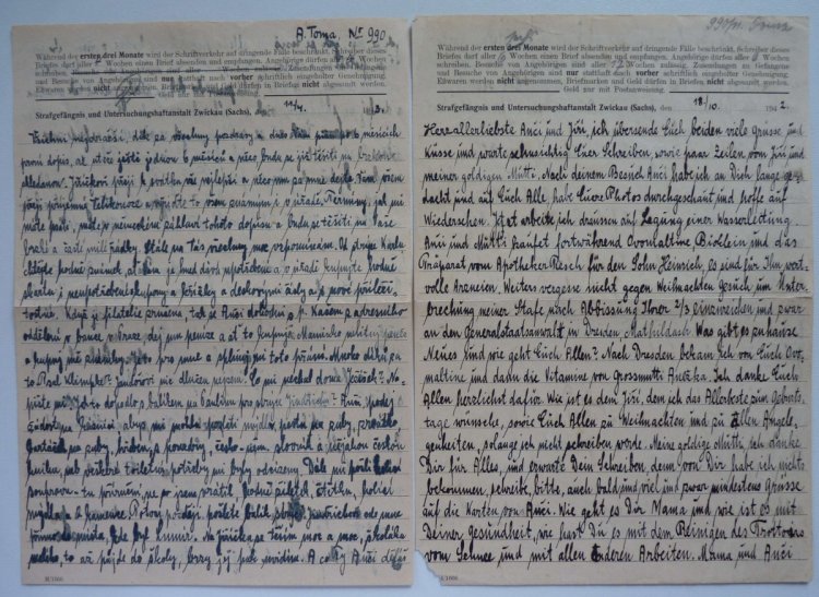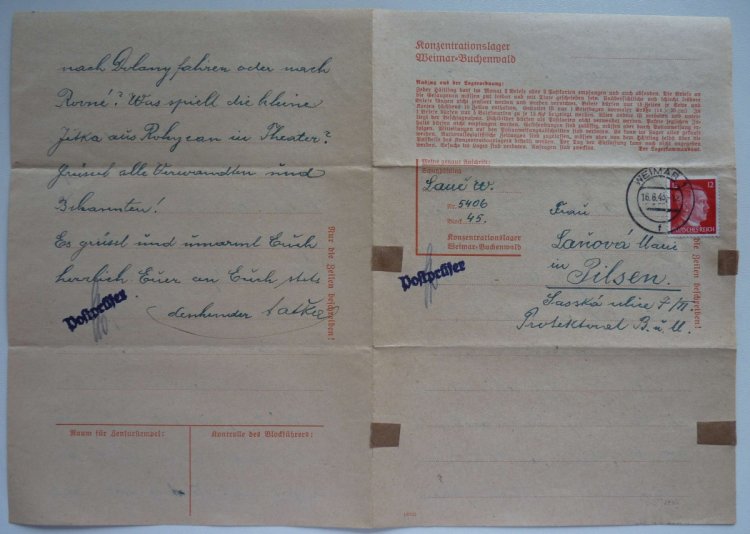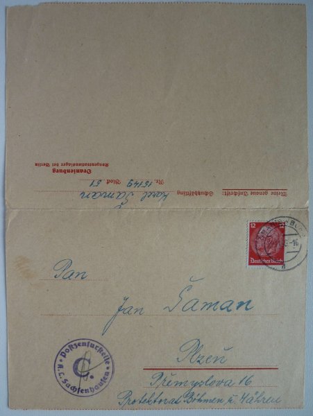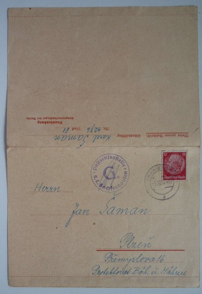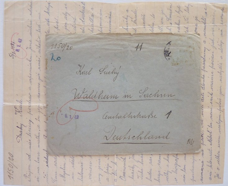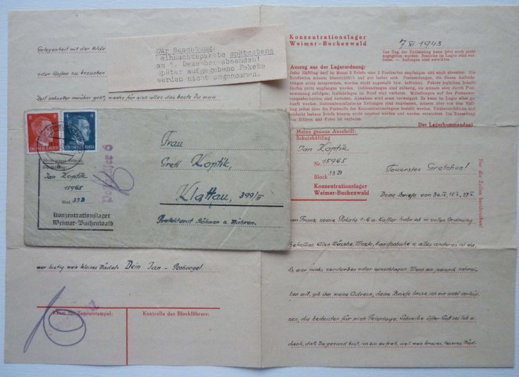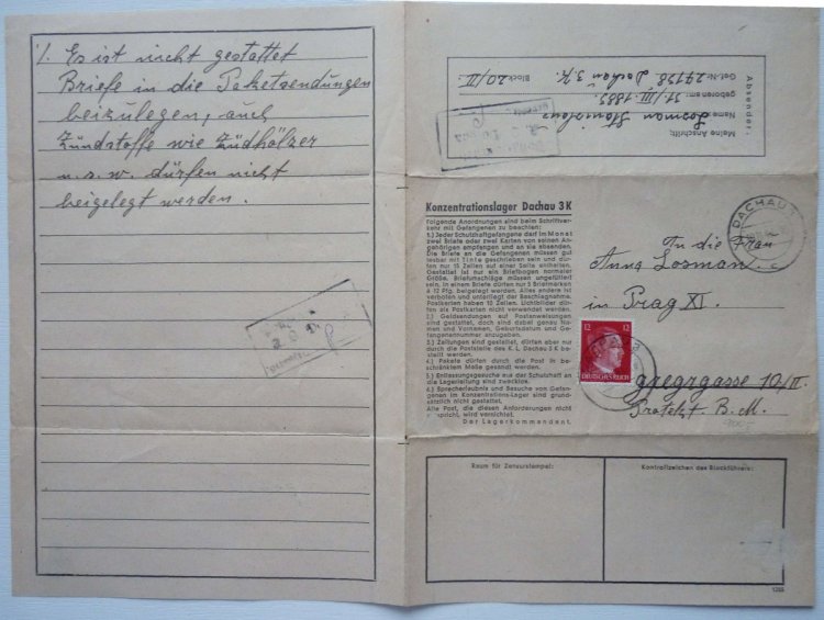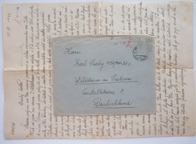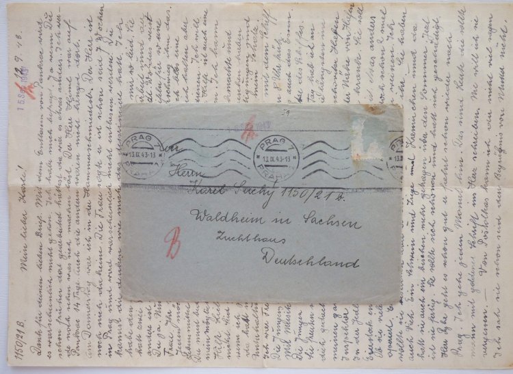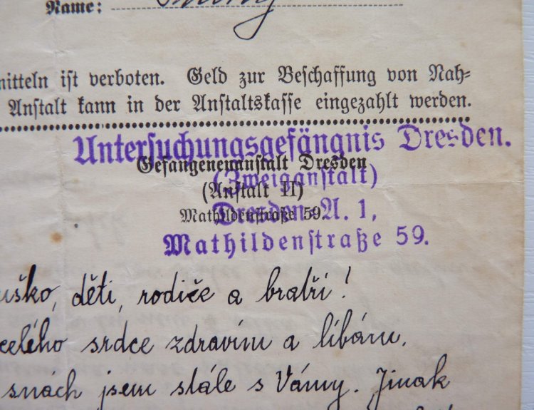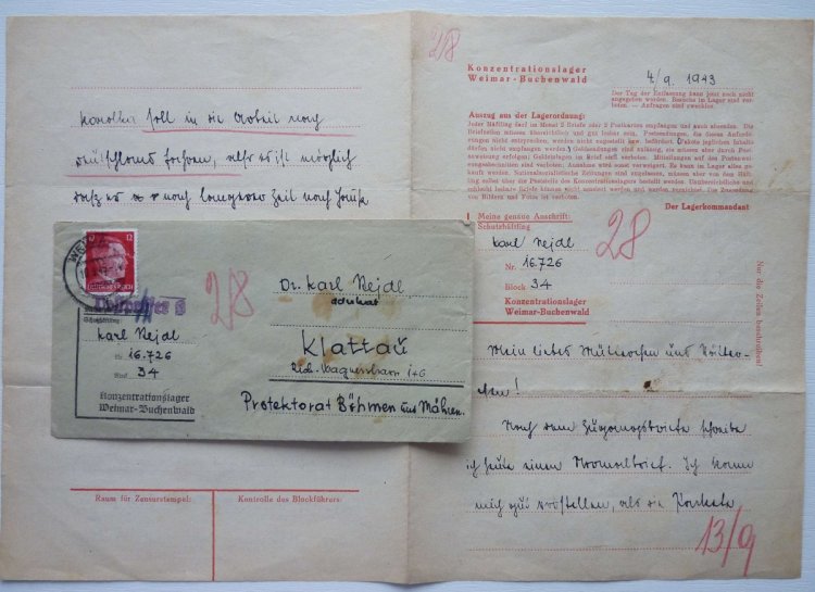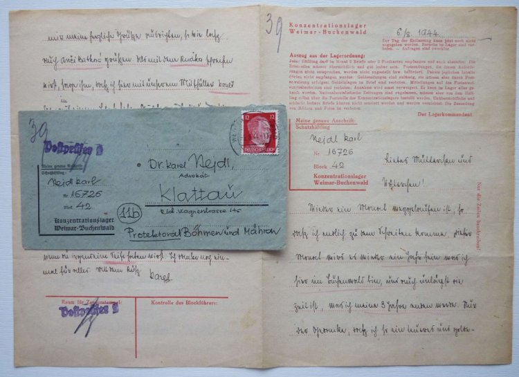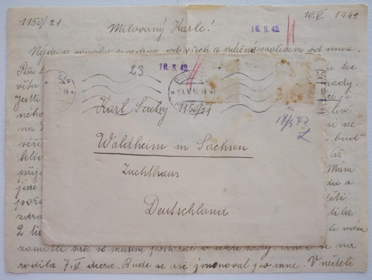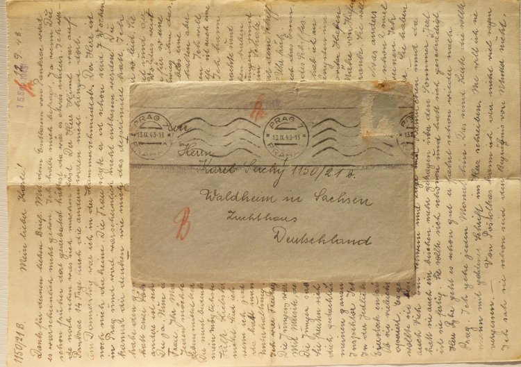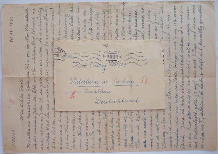 Další mimořádný celek je z věznice WALDHEIM in SACHSEN. Na českém filatelistickém trhu neznámá věznice .Mimořádné je i zachování průvodního lístku o podmínkách psaní dopisů .... verze v češtině i v němčině.