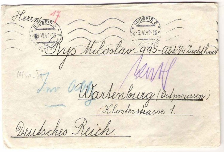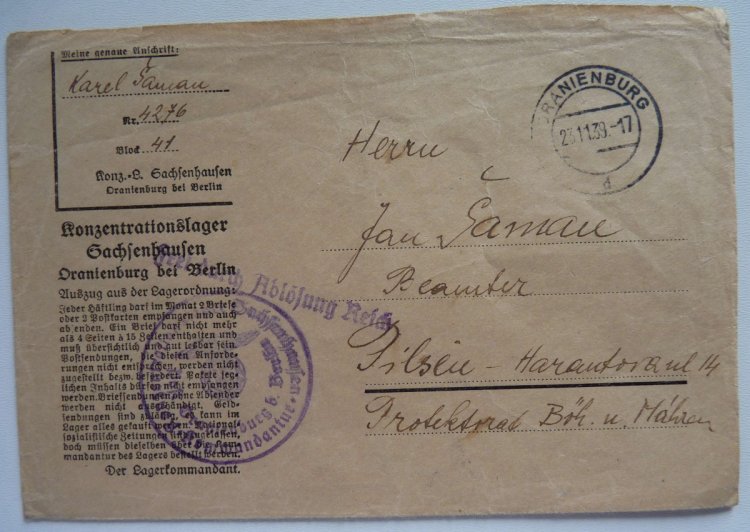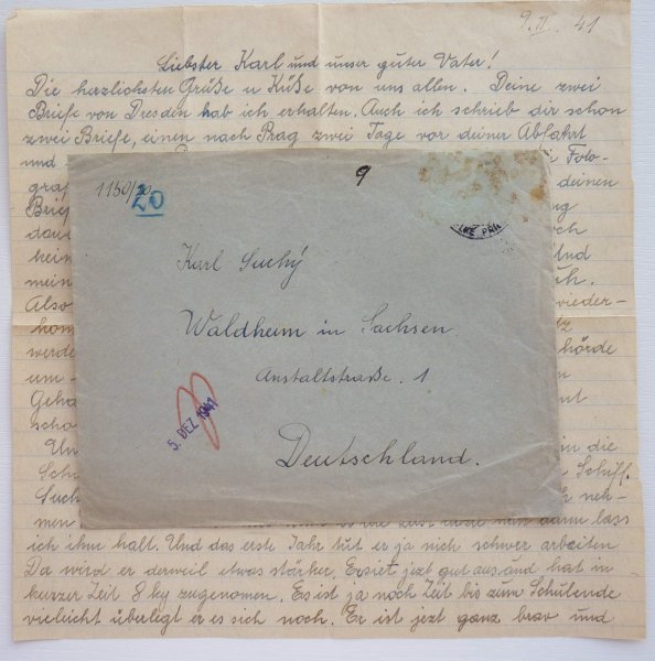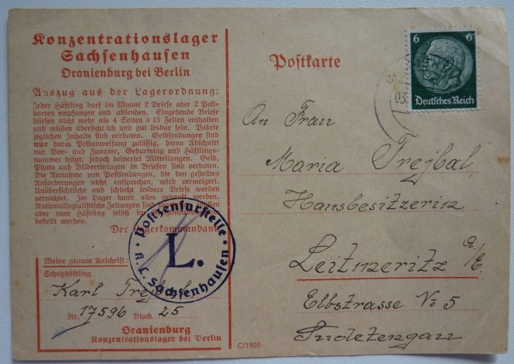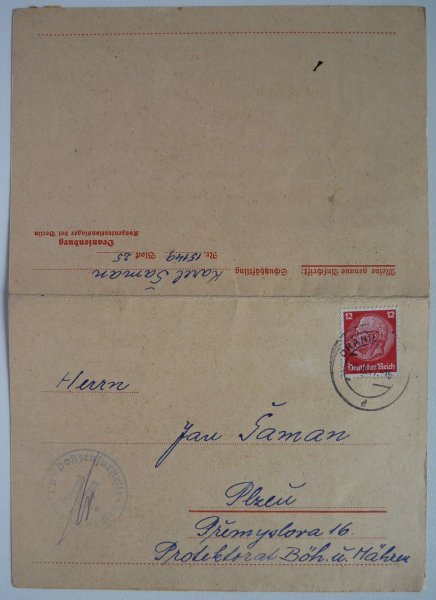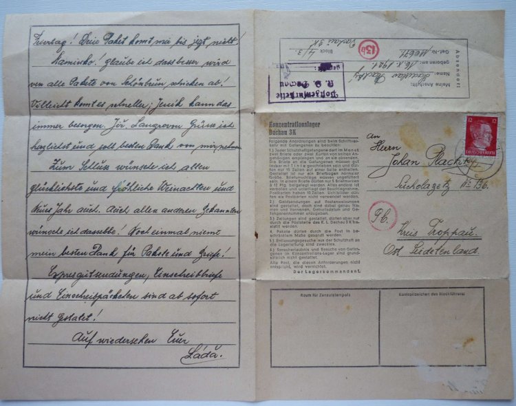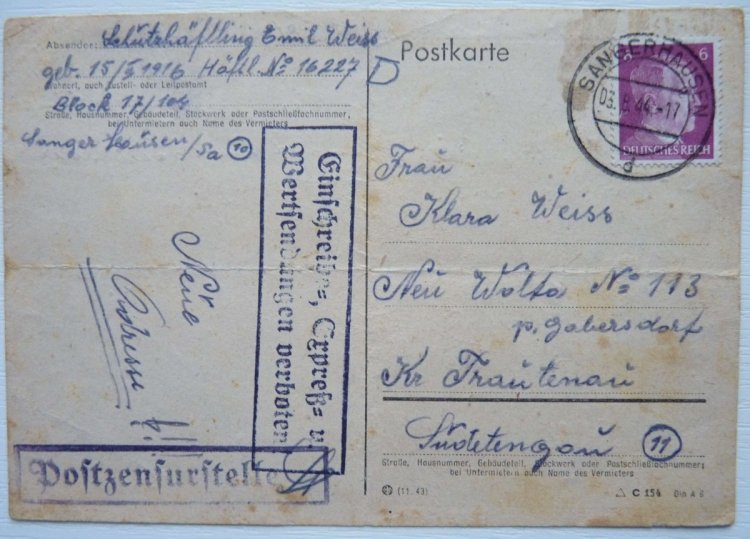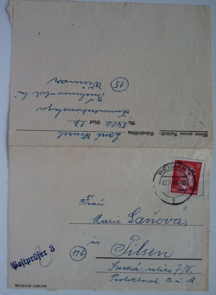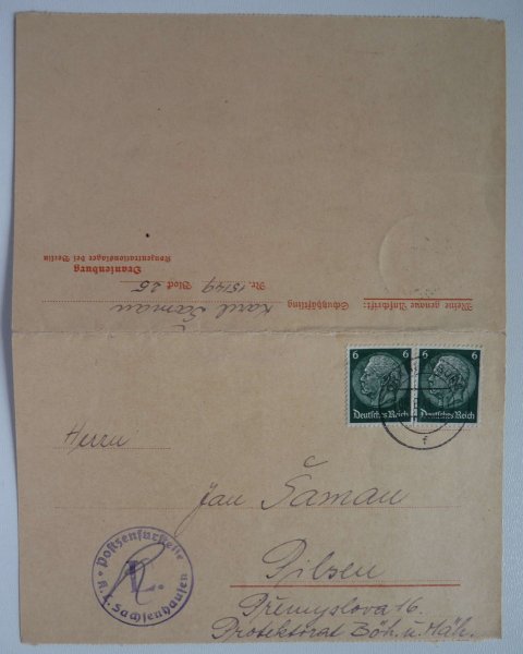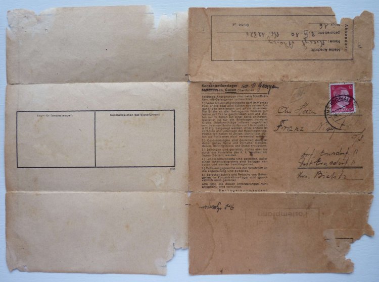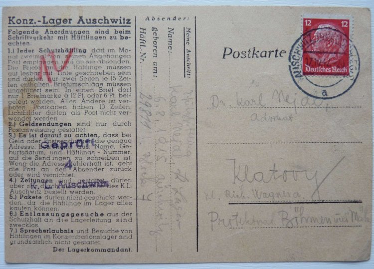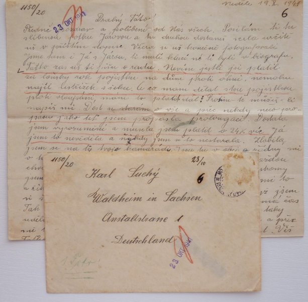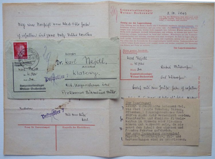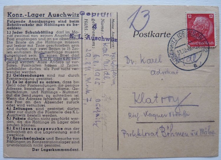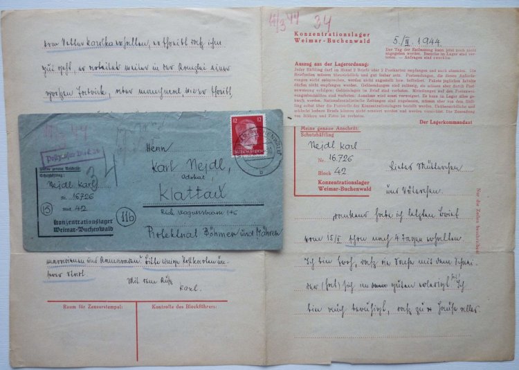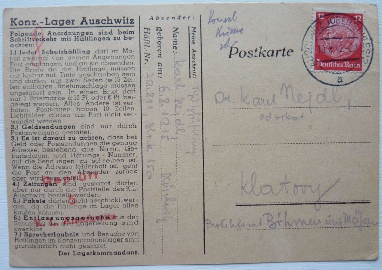 Další mimořádný celek je z věznice WALDHEIM in SACHSEN. Na českém filatelistickém trhu neznámá věznice .Mimořádné je i zachování průvodního lístku o podmínkách psaní dopisů .... verze v češtině i v němčině.