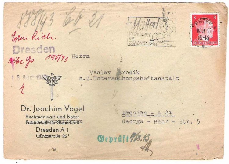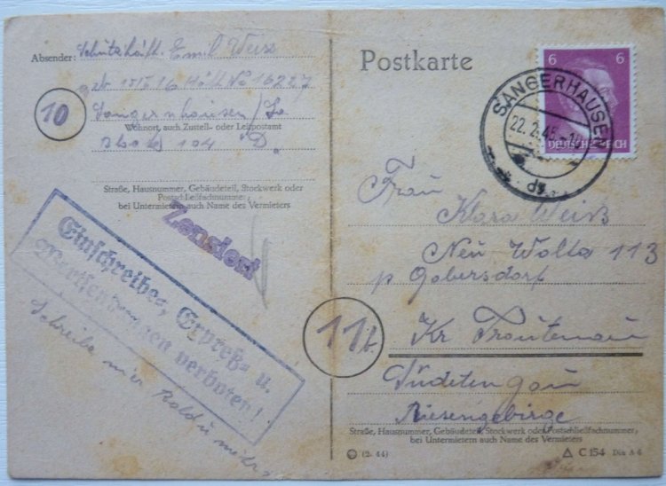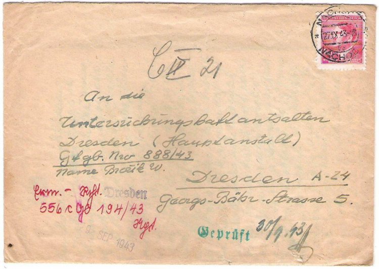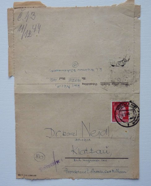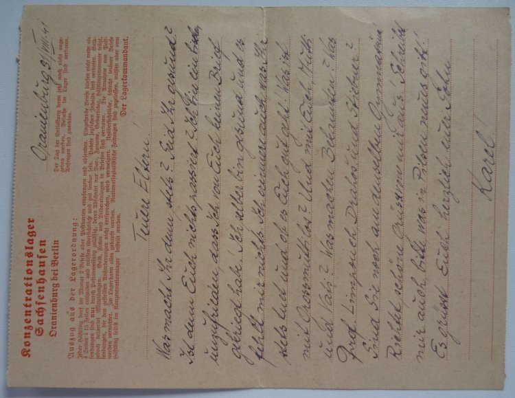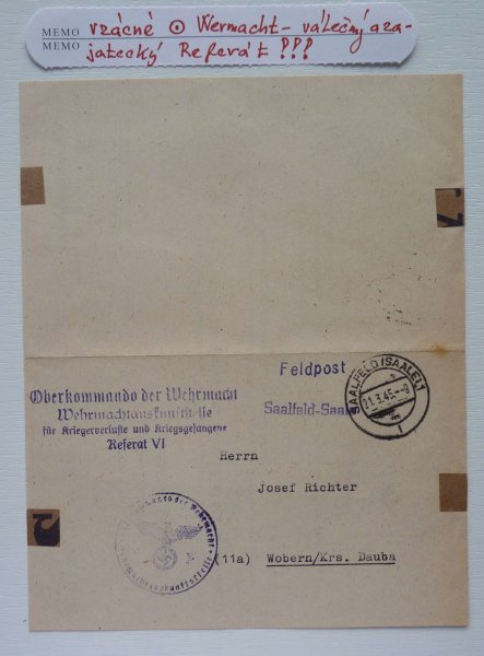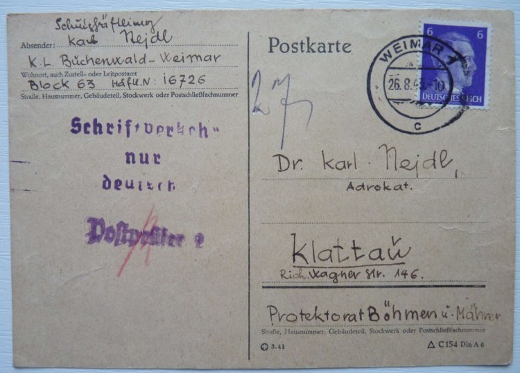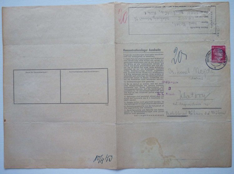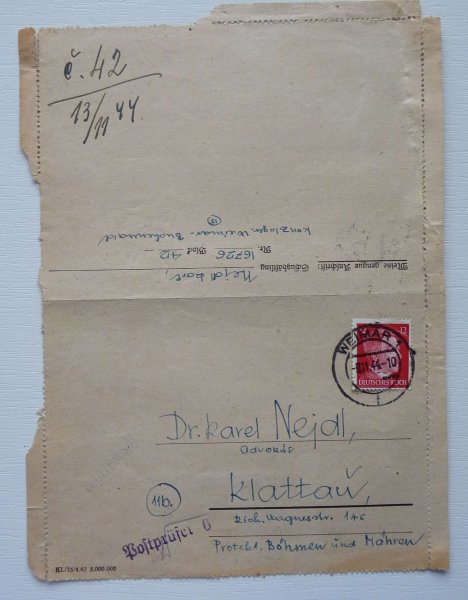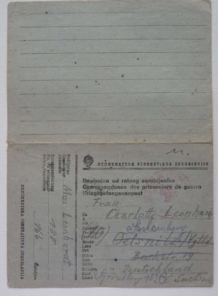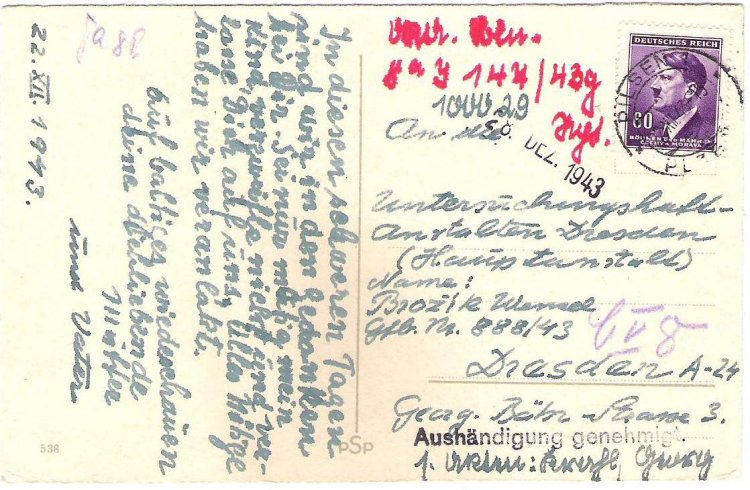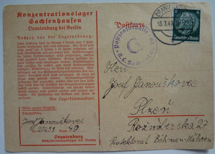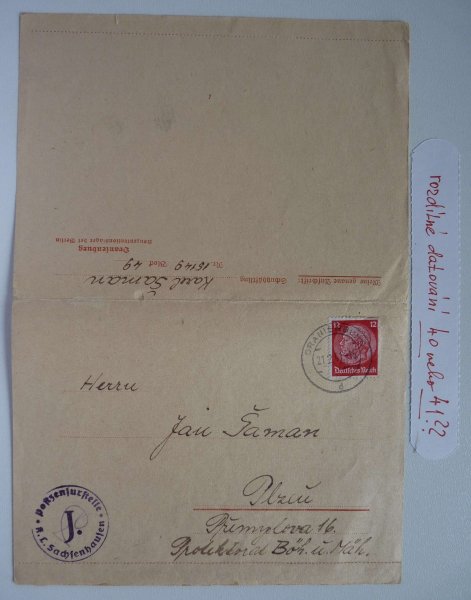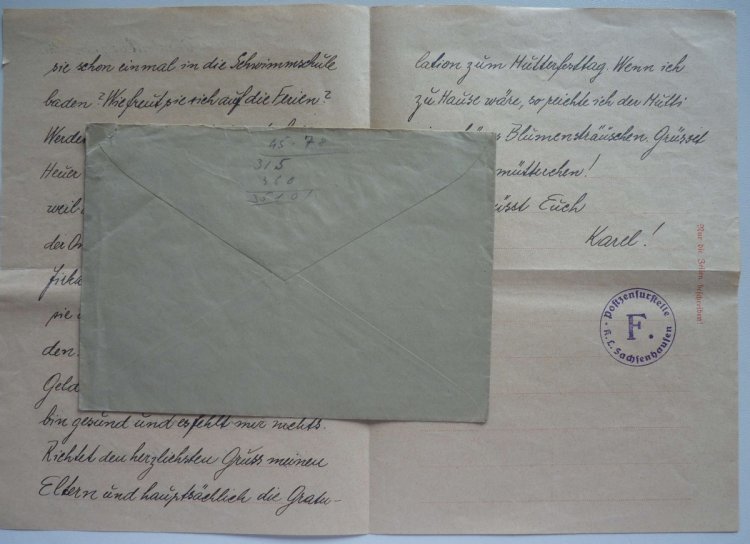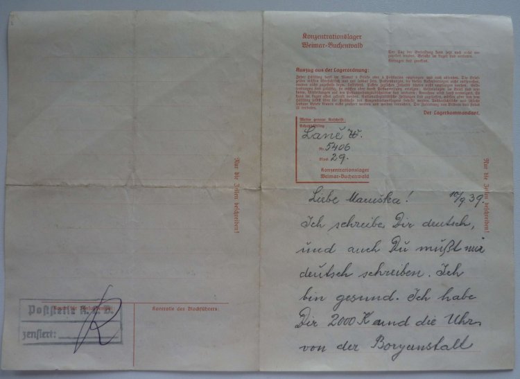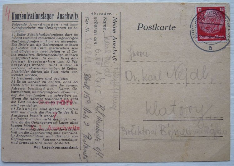 Další mimořádný celek je z věznice WALDHEIM in SACHSEN. Na českém filatelistickém trhu neznámá věznice .Mimořádné je i zachování průvodního lístku o podmínkách psaní dopisů .... verze v češtině i v němčině.