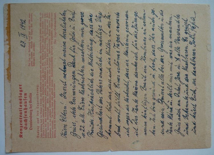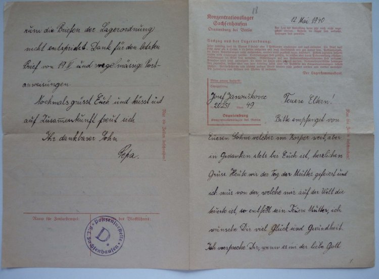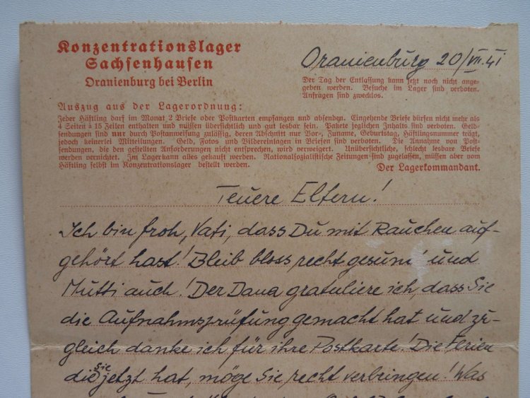 Jeden celek patří i naší inteligenci , která byla vzata jako rukojmí ( aniž by cokoliv proti režimu podnikla ).Mohli pouze po čase napsat domů ... JSEM ŽIV ...s vlastnoručním podpisem.