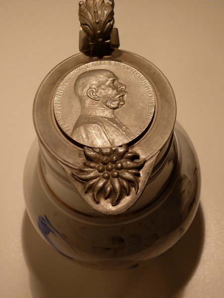 Korbel s portrétem Franz Josefa na horním uzávěru