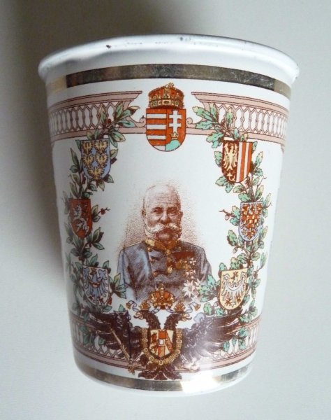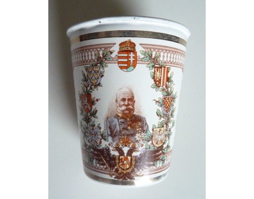 Kovový pohárek s portrétem Františka Josefa v uniformě