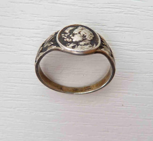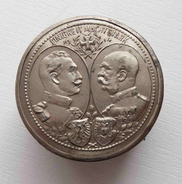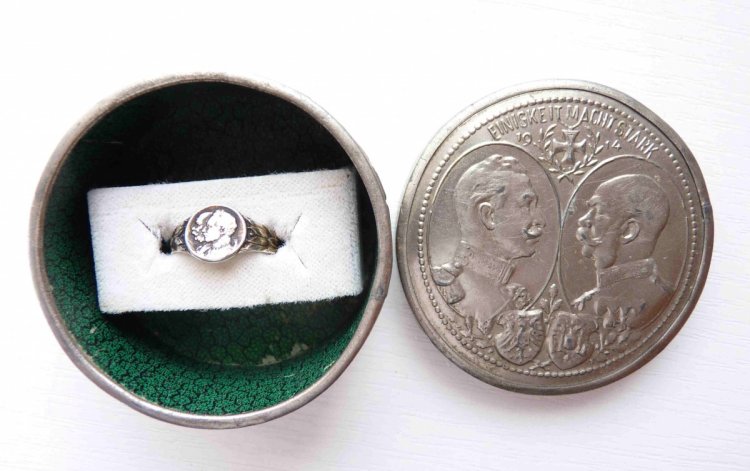 Krabička s portréty císařů - Franz Josef a Wilhelm včetně stříbrného prstenu s dvojportrétem císařů
