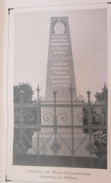 U příležitosti výročí šedesáti let vlády jeho veličenstva císaře Františka Josefa I. nechal spolek zbudovat v roce 1908 kamenný památník, který měl vyjadřovat jeho vlastenecké smýšlení a věrnost císařskému dvoru. Památník byl slavnostně odhalen dne 4. října 1908 – v den císařových jmenin.