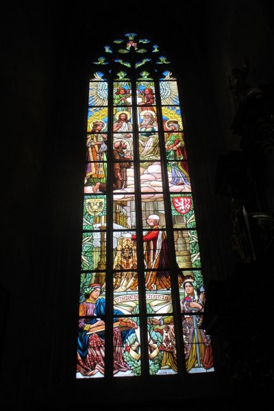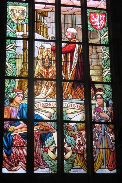 V roce 1913 bylo v chrámu sv. Barbory, v kapli sv. Blažeje, vytvořeno vitrážové okno připomínající návštěvu císařa Františka Josefa I. v Kutné Hoře v roce 1906. Návrh vytvořil František Urban, malbu na sklo provedl umělecký závod pro malbu skla J. Kryšpín, Praha 145-I. Panovník je zobrazen klečící před hlavním oltářem chrámu sv. Barbory. V horní části vitráže je namalována sv. Trojice.