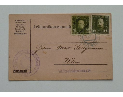 Lístek polní pošty frankovaný výplatní známkou a přetiskovou emisí Feldpost