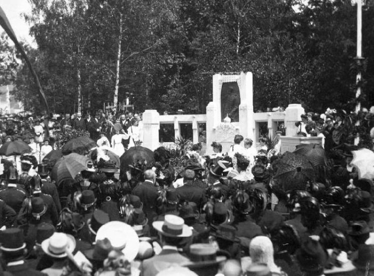 Pohlednice ze slavnostního odhalení pomníku císaře Františka Josefa I. U příležitosti 60. let jeho vlády. Bylo to 14. června 1908 na okraji dnešních Jiráskových sadů (tehdy Parkstrasse). Autorem byl vídeňský sochař, původem ze Znojma, T. H. Charlemont. Zhotovení bylo prací litoměřického kameníka Josefa Fialy. Po roce 1918 byla z pomníku odstraněna bronzová deska s reliéfem Františka Josefa I.