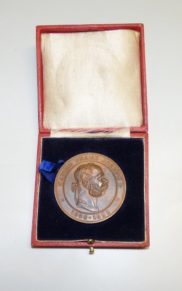 Medaile Františka Josefa, líc a rub, v původním pouzdru