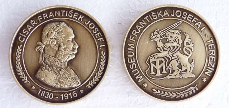 Cena je včetně poštovného do Čech . Do EU - je nutné cenu upravit + . Medaile k otevření musea - varianta František Josef / erb Terezína - 3 D provedení - hluboká ražba