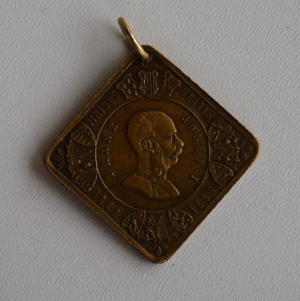 Medaile - klipa s Franz Josefem , orlicí , erbem a dubové listy