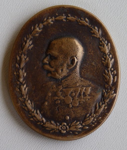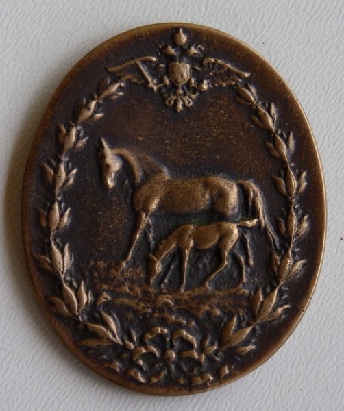 Medaile s Franz Josefem - zřejmě zkusmý odlitek, na druhé straně jsou koně