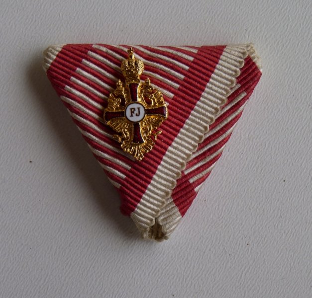 Miniatura komandérského kříže k Řádu rytířského kříže Františka Josefa na stuze