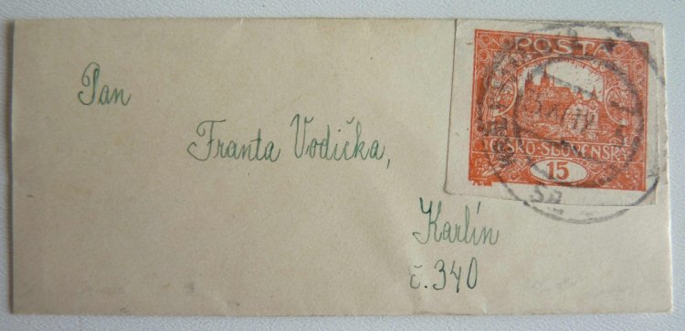 Miniaturní dopis - frankatůra hradčany 15 haléřů