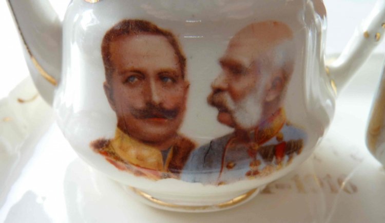 Mléčenka s dvojportrétem císařů a mimořádný čtyřhranný hrníček s císařem Vilémem