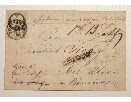 Nádražní dopis vyfrankovaný 5 Kr. kolkem- Poděbrady