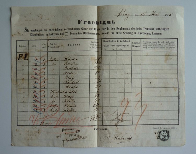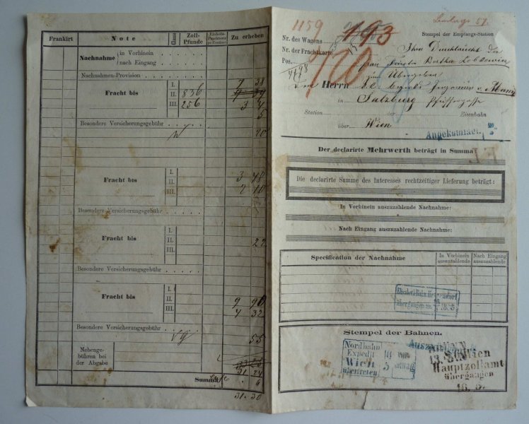 Velký formát - A3 - nádražní dopis / průvodka zboží dopravované vlakem + frankováno kolkem