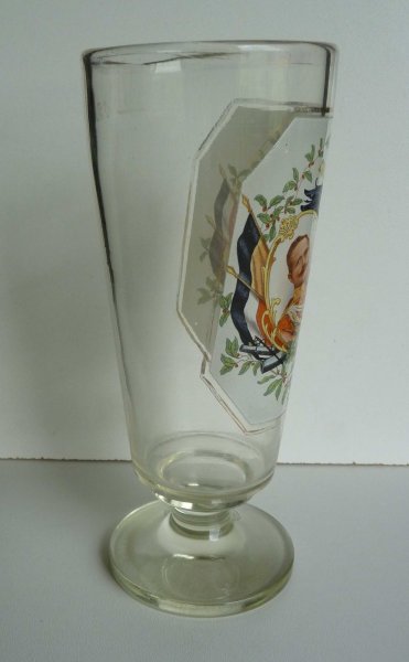 Vysoká sklenička s německou orlicí , portréty císařů se státními vlajkami a ozdobným orámováním