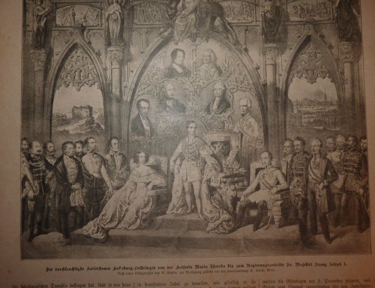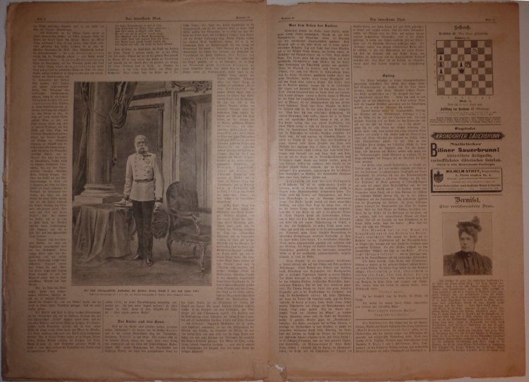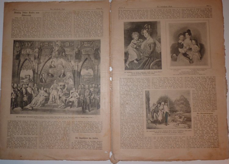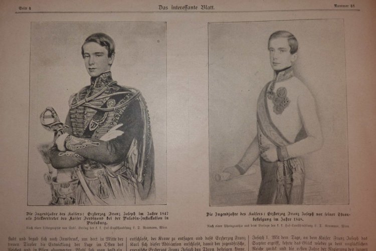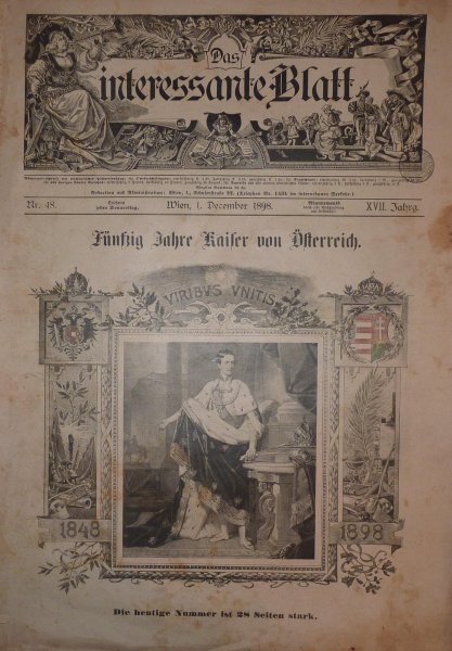Noviny ,, INTERESANTE BLAT ,, - kompletní noviny vydané k 50. tému výročí panování Franz Josefa ... mnoho snímků a popisů etap jeho života