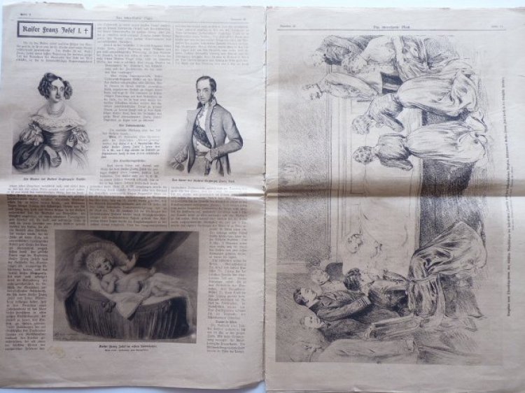 Noviny INTERESSANTE BLATT - Wien 30.november 1916 , úmrtí Franz Josefa - celý obsah věnovaný datově k důležitým mezníkům jeho života