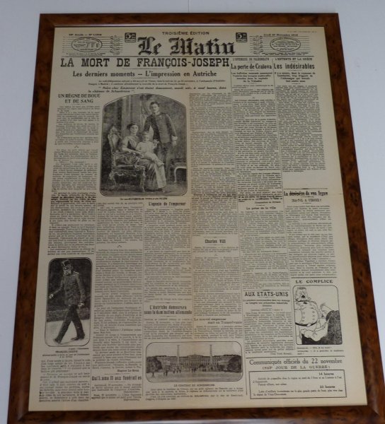 Noviny LE-MATIN s tématikou ,, Smrt Františka Josefa ,, rok 1916
