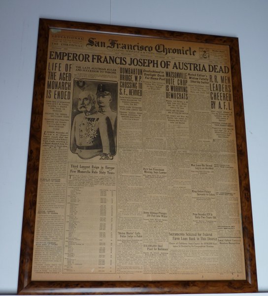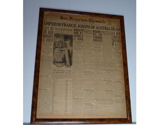 Noviny SAN FRANCISCO CHRONICLE s tématikou ,, Smrt Františka Josefa ,, - velký formát