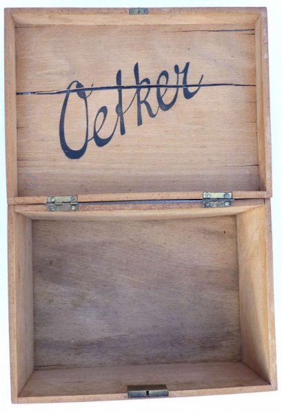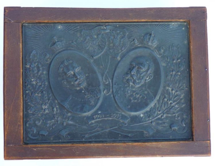 Veliká krabice na cukrovinky od firmy Oetker , portréty císařů Franz Josefa a Viléma - zinek