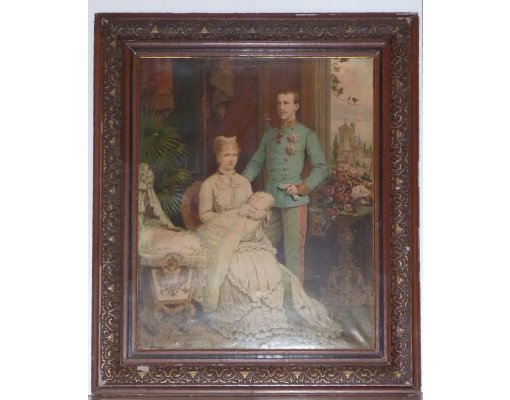 Oficiální obraz - zobrazující arcivévodu Rudolfa následníka trůnu s chotí - princeznou Stefanií . Jedná se o původní , dobový tisk olejového obrazu - 80.léta 19.století .Tisk je nalepen na plátně .Tento typ obrazů byl určen do úředních místností monarchie