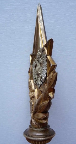 Ozdobná špic na prapor - jeden z nejlepších exponátů musea RRR - 32 cm délka / bronz