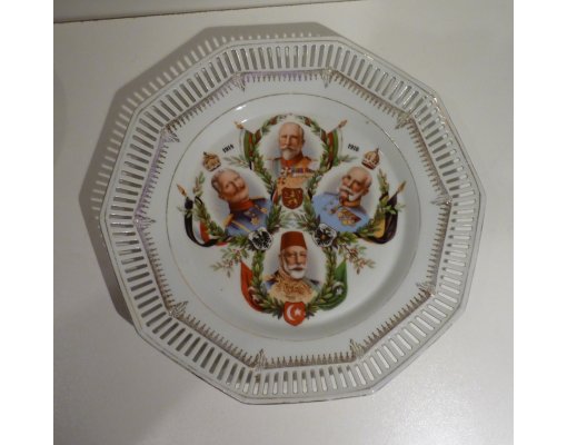 Ozdobný talíř s vyobrazením čtyř evropských panovníků 1914 -1916