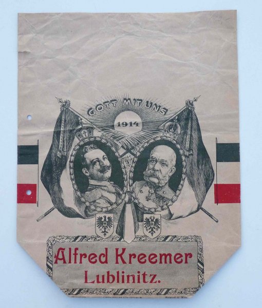 Papírový sáček - s portréty císařů FJ I. a W II. / Alfred Kreemer - Lublinitz
