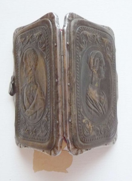 Peněženka - portrét mladého Františka Josefa a mladé císařovny Sissi ( Elisabeth ) / kov + kůže , mimořádný exponát