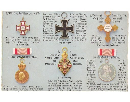 Řád Franz Josefa I., Řád pro vojenské kněze PIIS MERITIS, Železný kříž a další