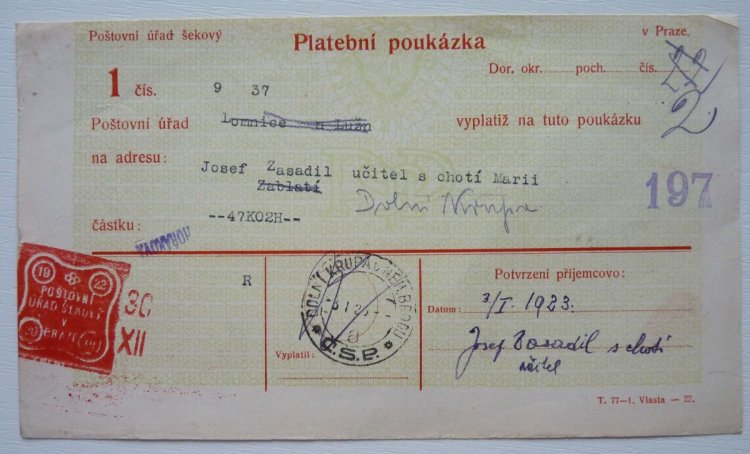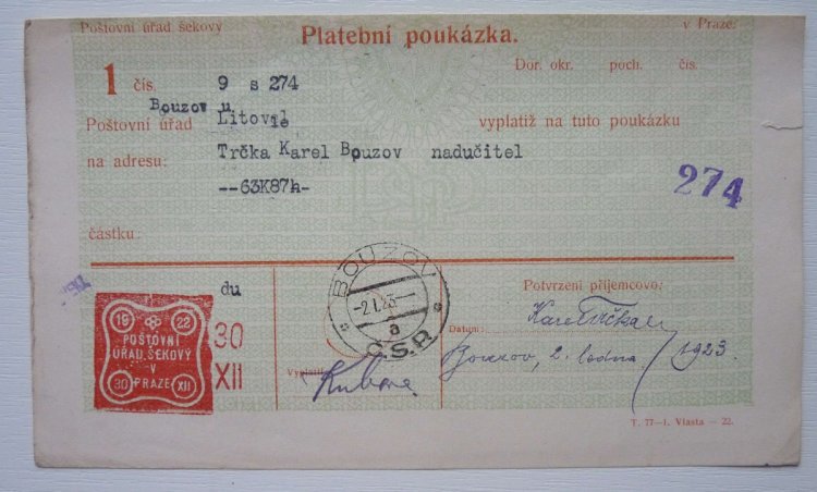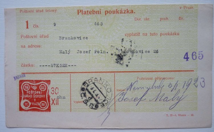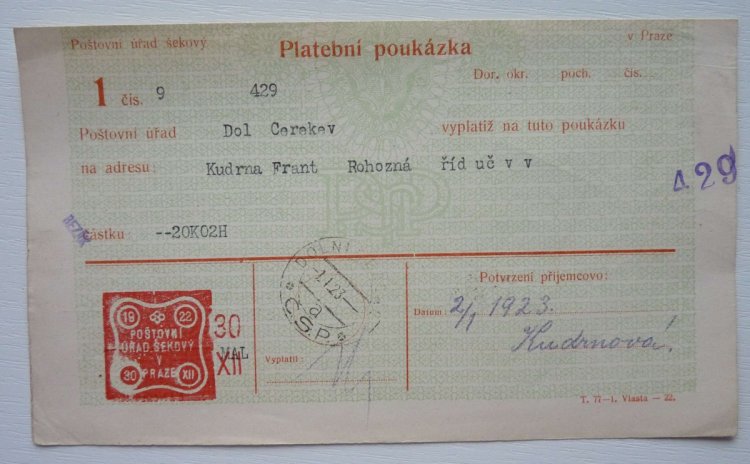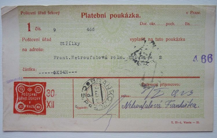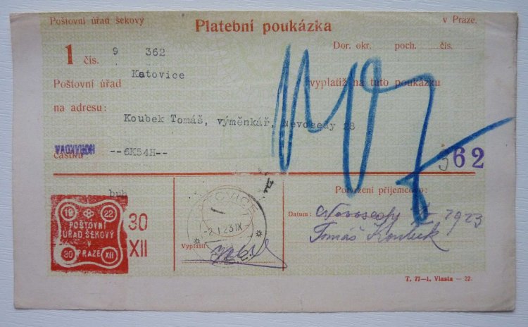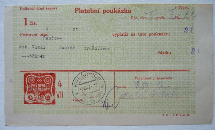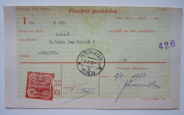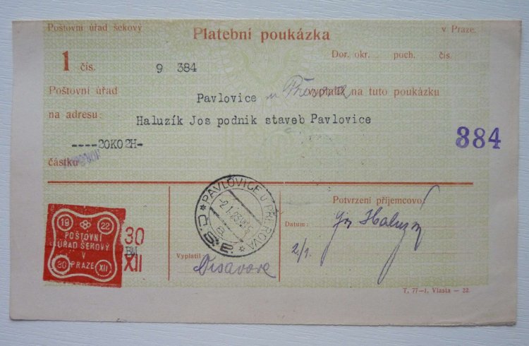 Jedná se o doklady , které měly být úředně zničeny po uplynutí povinné archyvační doby . Doklady téměř neznámě a mimořádné.Na běžných filatelistických aukcích se nevyskytující.