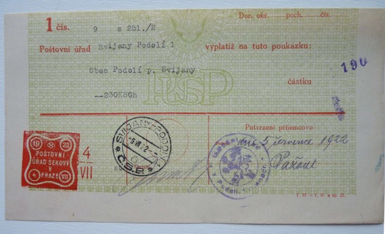 Tento celek je vzácný i mimořáným výskytem razítek malých obcí ..... RR!