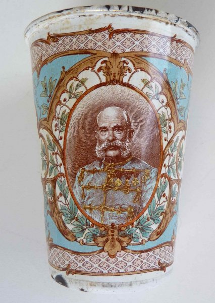 Plechový pohárek s portrétem Franz Josefa - smalt