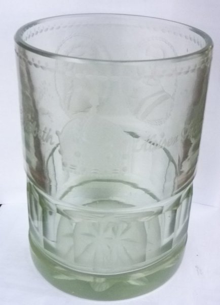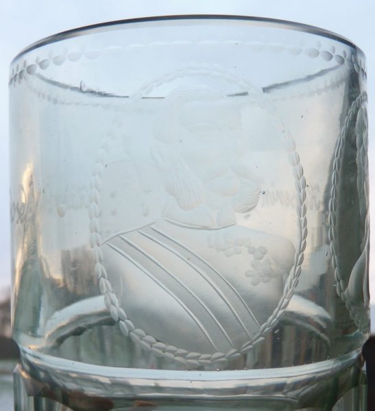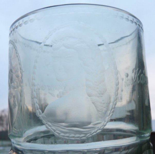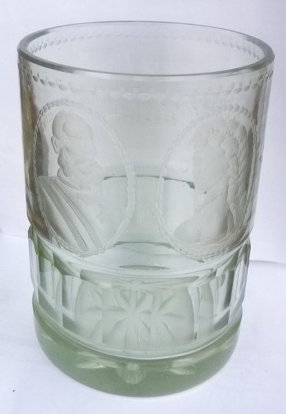 Skleněný pohár - broušené portréty císaře FJI a císařovny Elisabety / císařská koruna / velikost - jeden litr