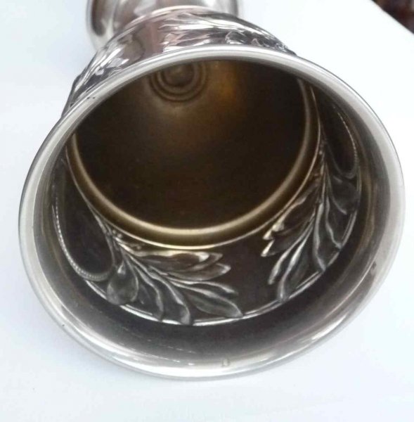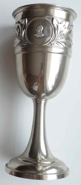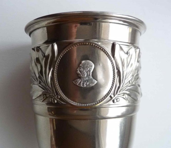 Starý pohár s portrétem císaře Františka Josefa . Zřejmě jako polotovar pro různé sportovní či střelecké závody - bez jmenování či účelu použití . Přesto mimořádná zachovalost ... 26 cm .