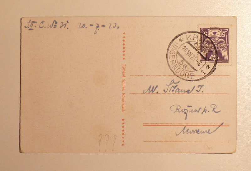 Pohlednice frankována 5 haléřovou známkou, vzácná frankatura