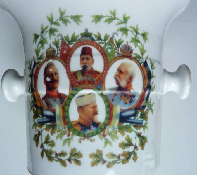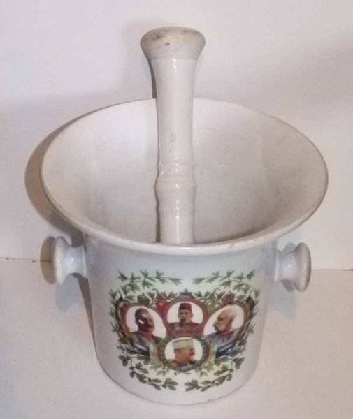 Porcelánový hmoždíř - Ferdinand ,Franz Josef,Mohamed a Wilhelm / unikátní zachovalost , 18 x 22 cm - včetně tlouku 27 cm